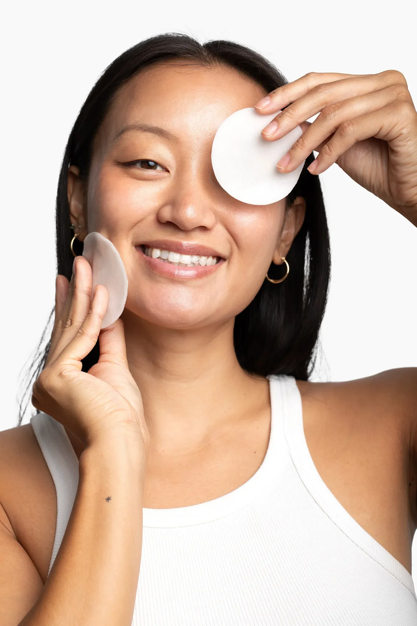 JiYu Toning Polish Pads gently exfoliate, hydrate, and tone the skin. They help improve dark spots, uneven skin tone, fine lines, dullness, and rough texture while prepping skin for the rest of your skincare routine.